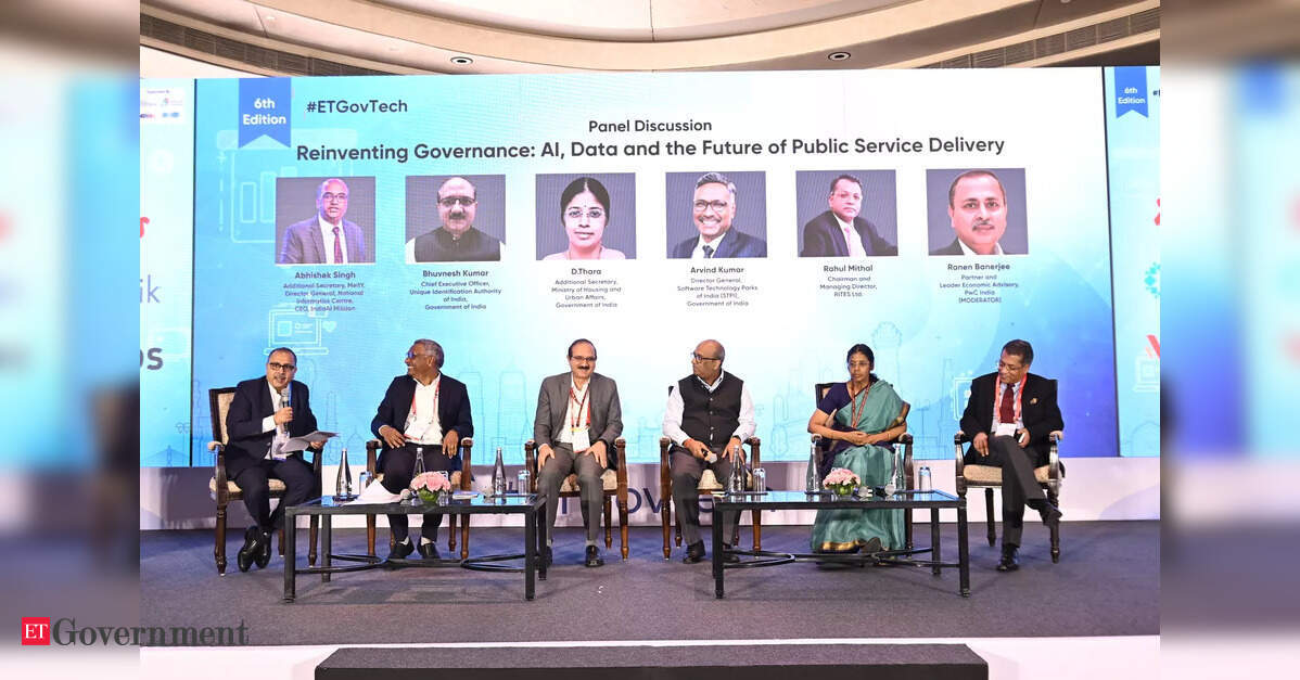 Abhishek Singh, Additional Secretary, Ministry of Electronics and Information Technology (MeitY), Director General, National Informatics Centre, and CEO, IndiaAI Mission; Bhuvnesh Kumar, Chief Executive Officer, Unique Identification Authority of India (UIDAI); D. Thara, Additional Secretary, Ministry of Housing and Urban Affairs, Government of India; Arvind Kumar, Director General, Software Technology Parks of India (STPI); and Rahul Mithal, Chairman and Managing Director, RITES Ltd.