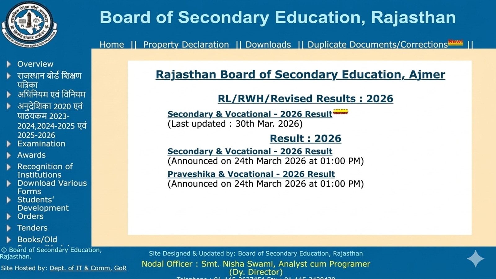 Step 1: Access the official website at rajeduboard.rajasthan.gov.in.